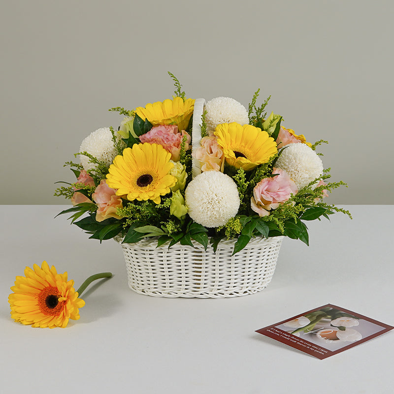 This flower basket cheered recipient after surgery until discharge. She loves the types of flowers, color combination & arrangement. Thank you, Flower Chimp!